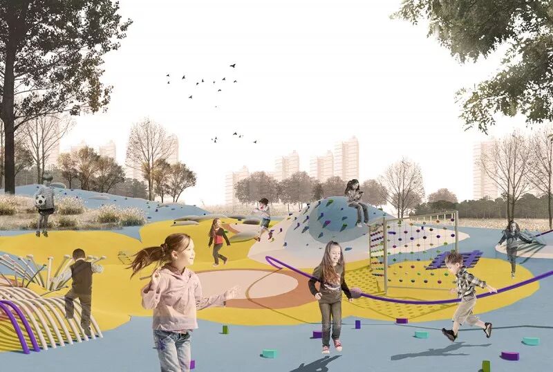 另外,休闲娱乐运动场所与文化天地也必不可少,于是儿童游乐场所,如迷宫、多米诺骨牌或乐高搭建的活动场地,攀岩运动场所、温室庭园等有趣的设施空间更是为南艺师生与南京市民提供了好去处,而石膏房可以放置一些中外的石膏像,提供给南艺的老师进行授课教学,也可以提供给普通市民进行参观等,民居建筑博览、雕塑园作为文化场所在其中则集陈列、观赏、展示与一体,开展具有一定实践性的文创体验环节,更加迎合了现代人对城市生活质量的要求。