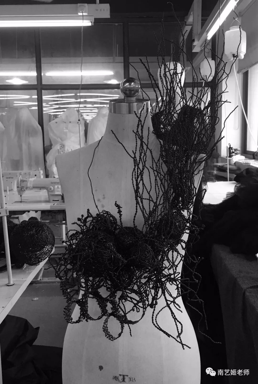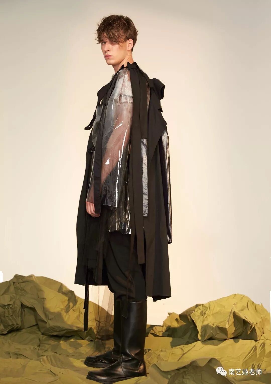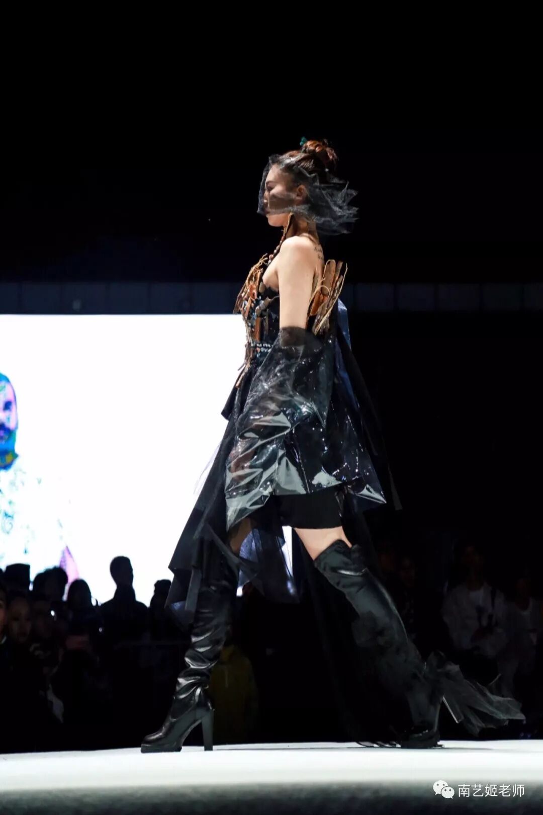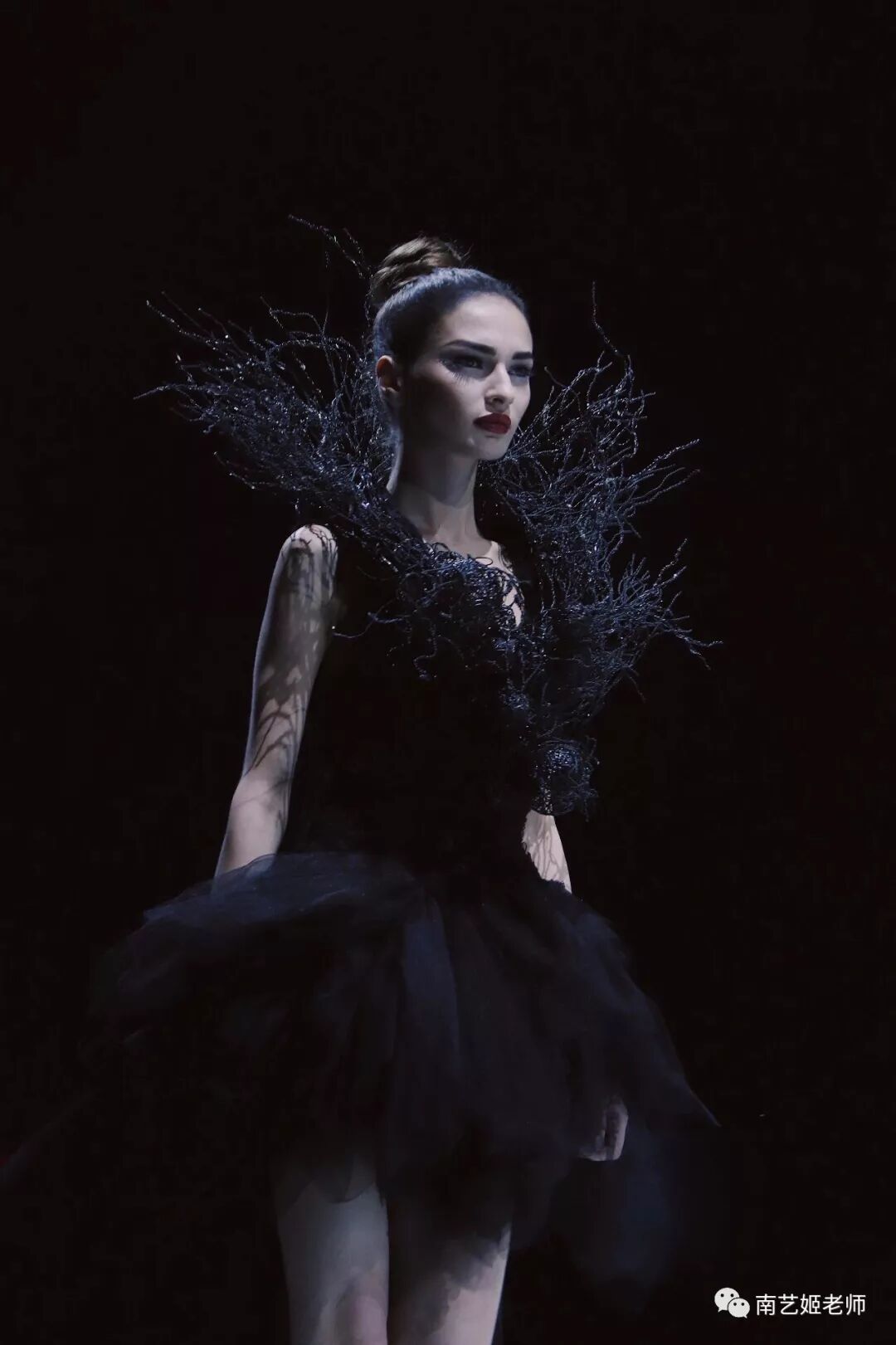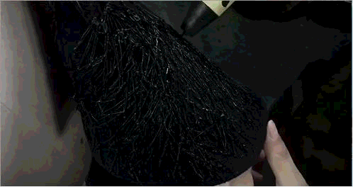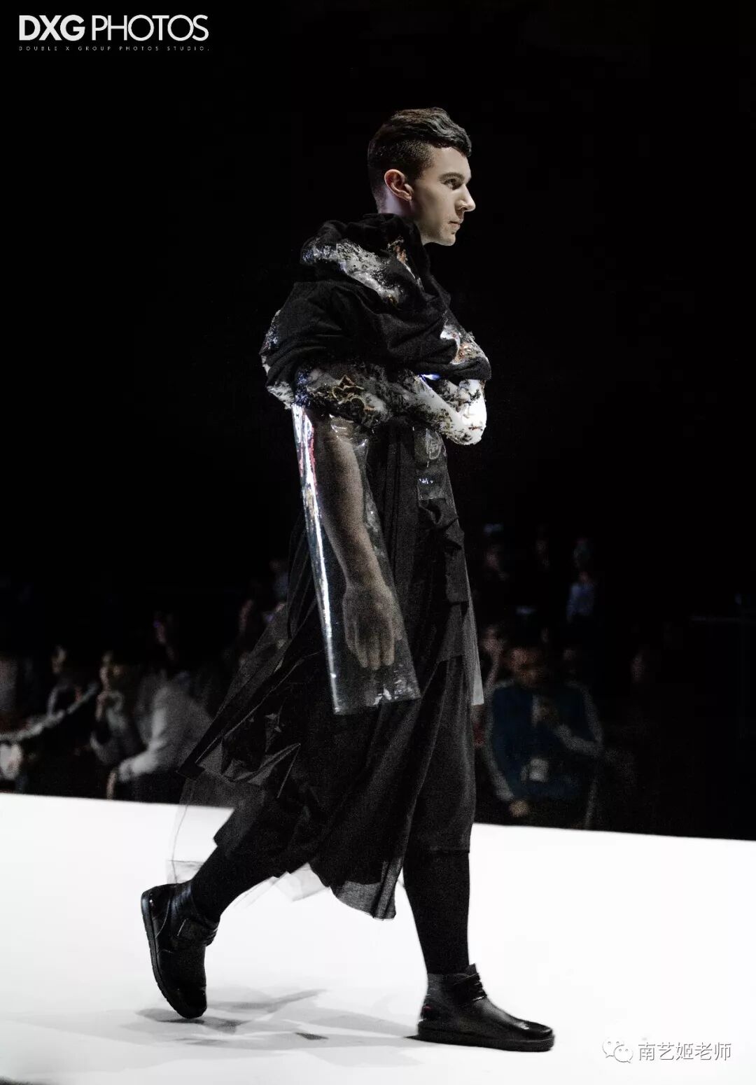 除了现实生中很爱黑色的原因除外,作品用了用全黑色的目的,是希望更多的关注点是到作品本身上去。材料的运用,装置的形态,包括最后服装表现的形式,除去颜色,更能直观的去感受到实验性服装带给我们的启发性。