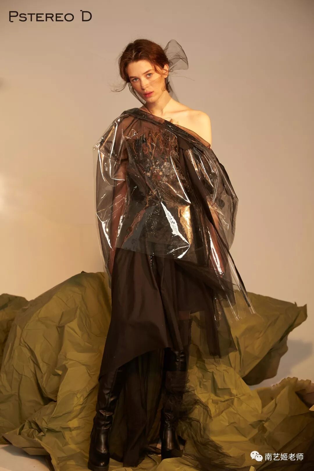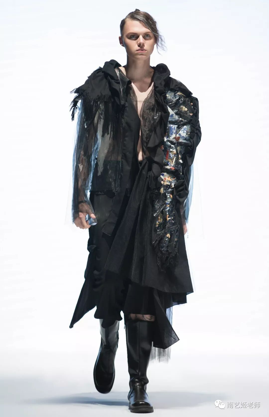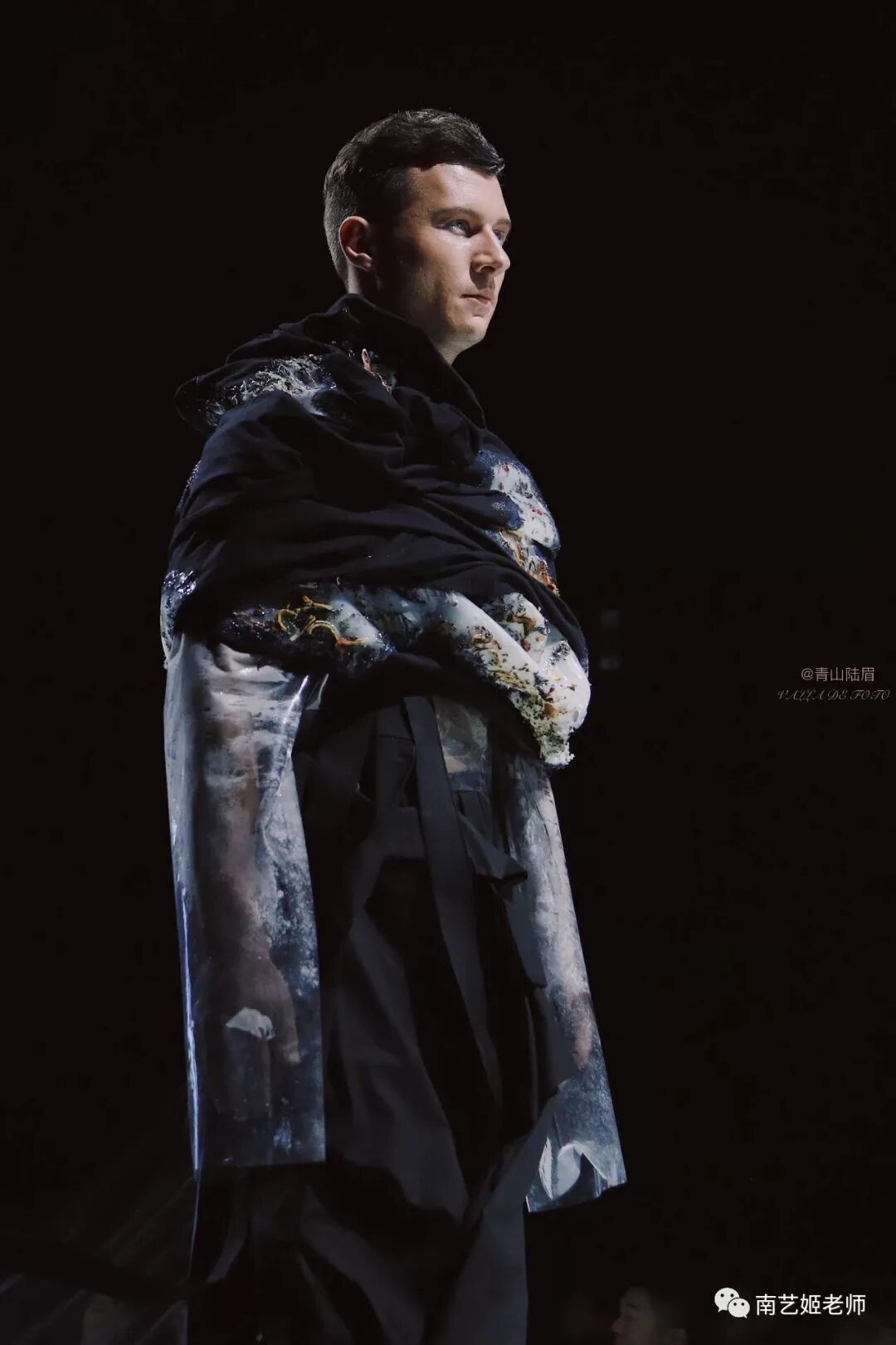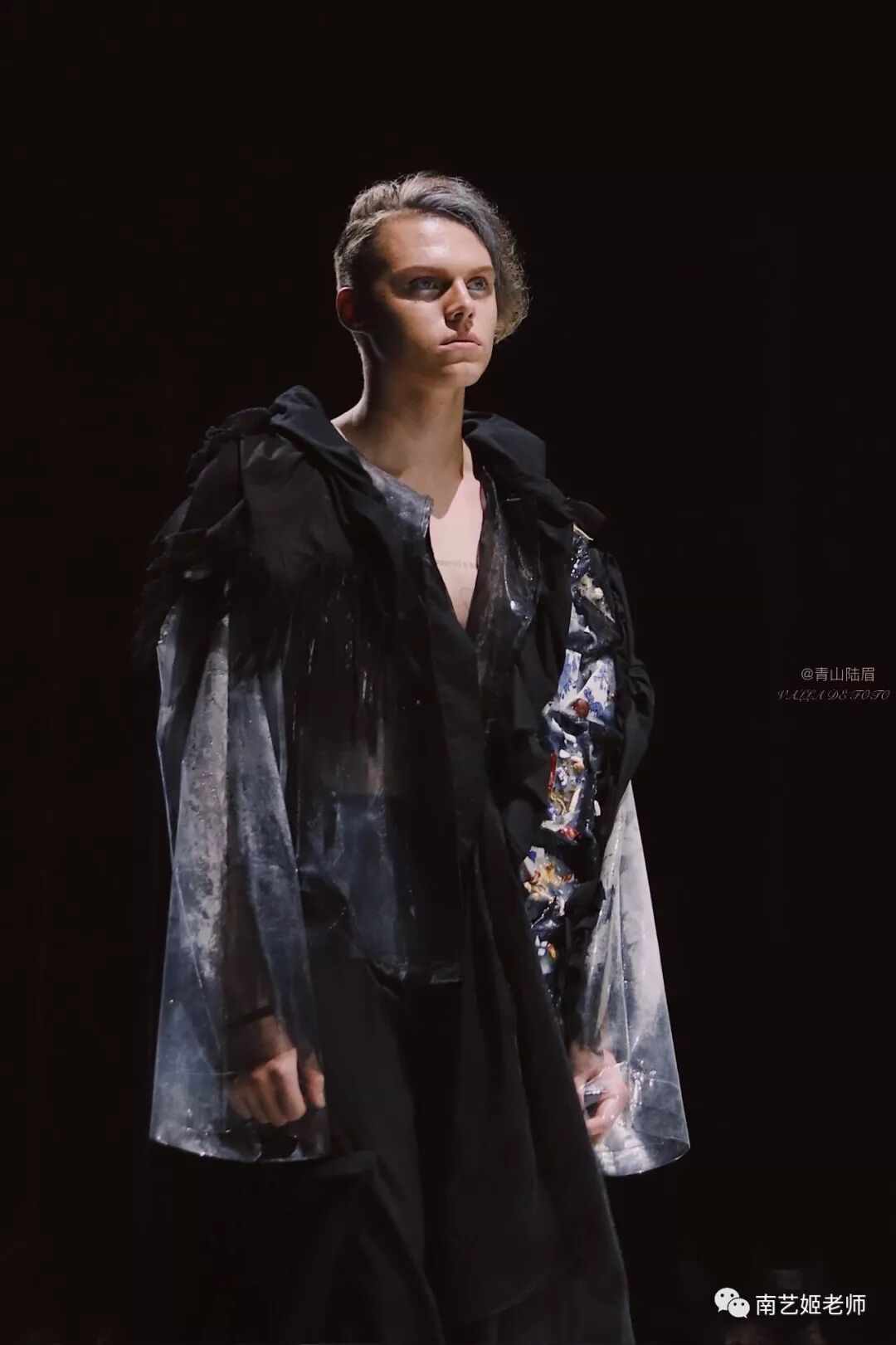 除了现实生中很爱黑色的原因除外,作品用了用全黑色的目的,是希望更多的关注点是到作品本身上去。材料的运用,装置的形态,包括最后服装表现的形式,除去颜色,更能直观的去感受到实验性服装带给我们的启发性。