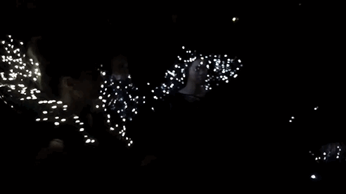 而如何去体现“融”这个小主题,决定将丝路物件浸入液态硅胶中重新构成,待硅胶固化之后,材料、硅胶、帆布料融为一体,一片全新的面料便改造完成。由于成品硅胶较通透的属性,想到将led灯条藏入其中,丰富的灯光效果更能提升服装的视觉体验。