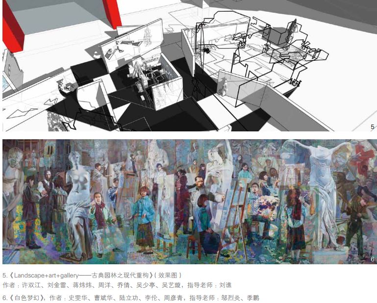 如大量国际教学工作坊的进行。外籍教授给题方式的神来之笔,从不重复的、变魔术般的举重若轻,他们思路的奇异、视野的开阔、辅导解题路径的出人意料,媒介手法的不拘一格与某种未完成状态,都是实验性设计教学的零距离示范。如学习建筑学的理论学说与研究方法,借鉴影像建筑学、建构文化、参数化设计等研究成果。