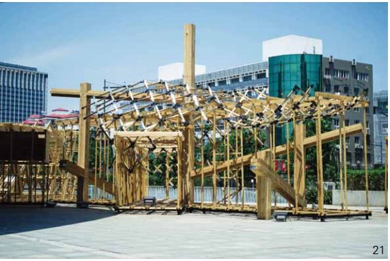 21.《木构搭建——非编织网探索》,作者:王勋、王成浩、陈实、杜春海、李旭、李路路、宋艳岚、刘旭琦、阮迪莎,指导教师 :徐旻培、邬烈炎