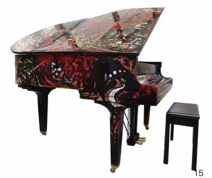 15.《钢琴》,漆艺,作者 :姜康等,指导教师 :李永清