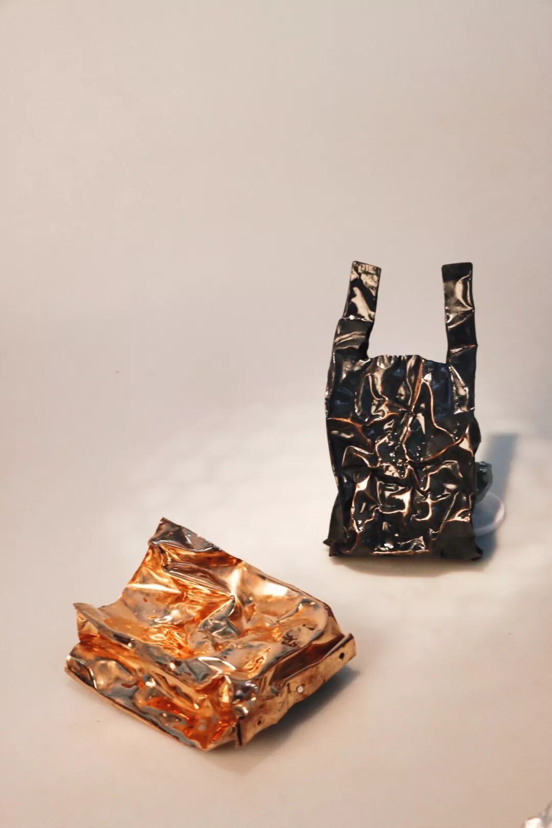 手提包or纸袋?不,这是以塑料袋为灵感创作的金属器皿。