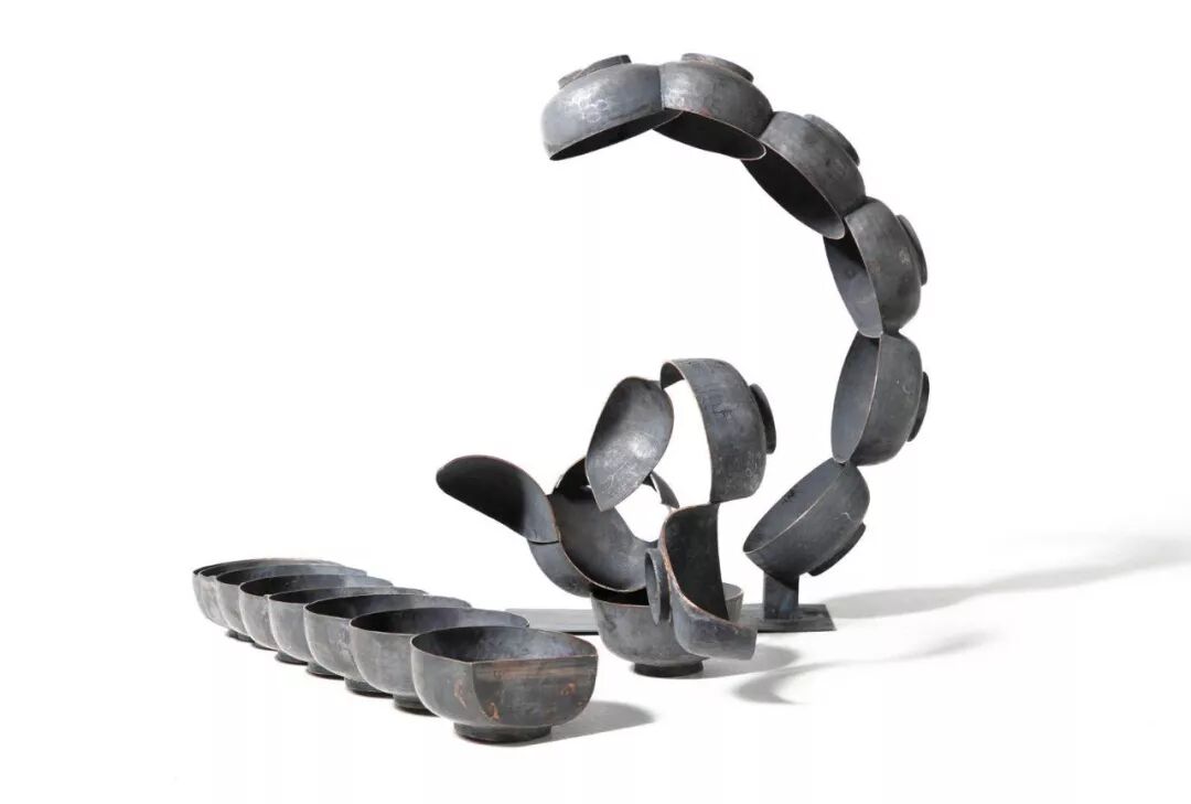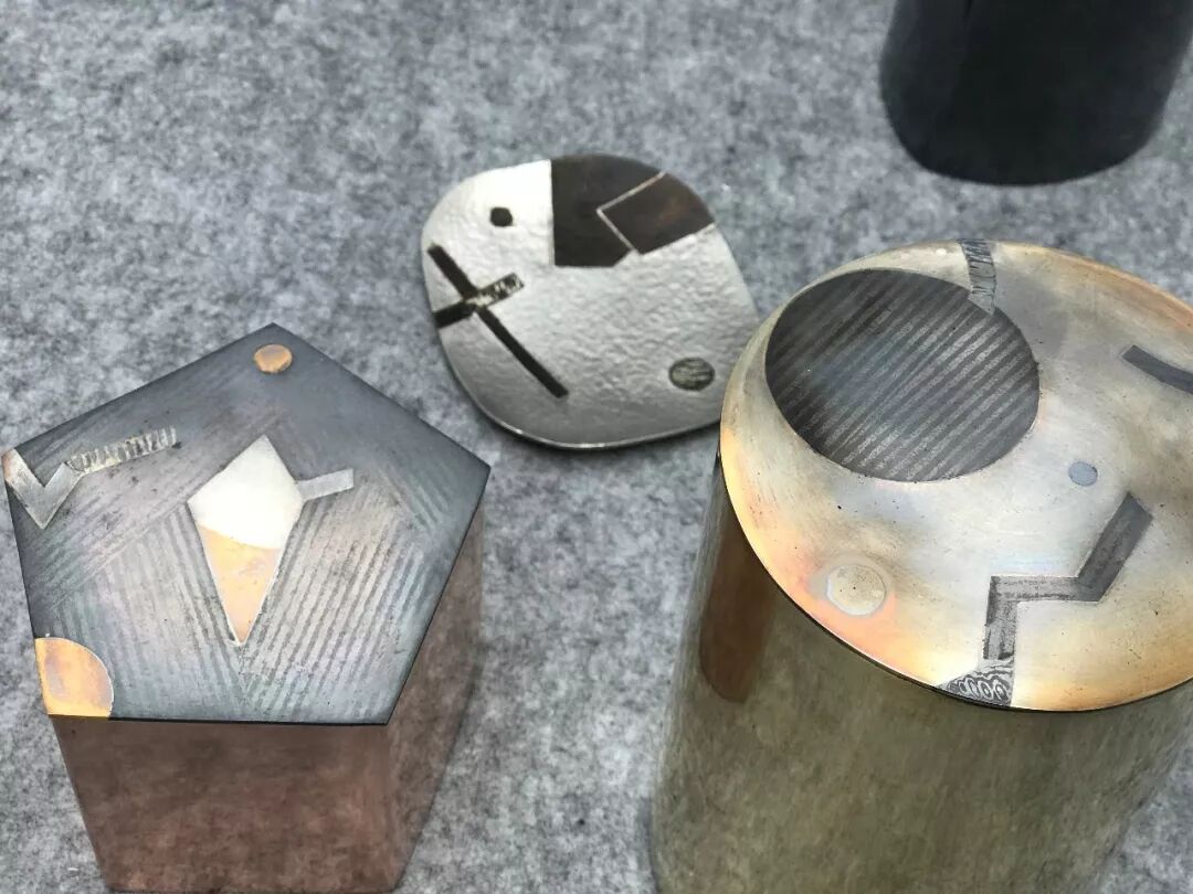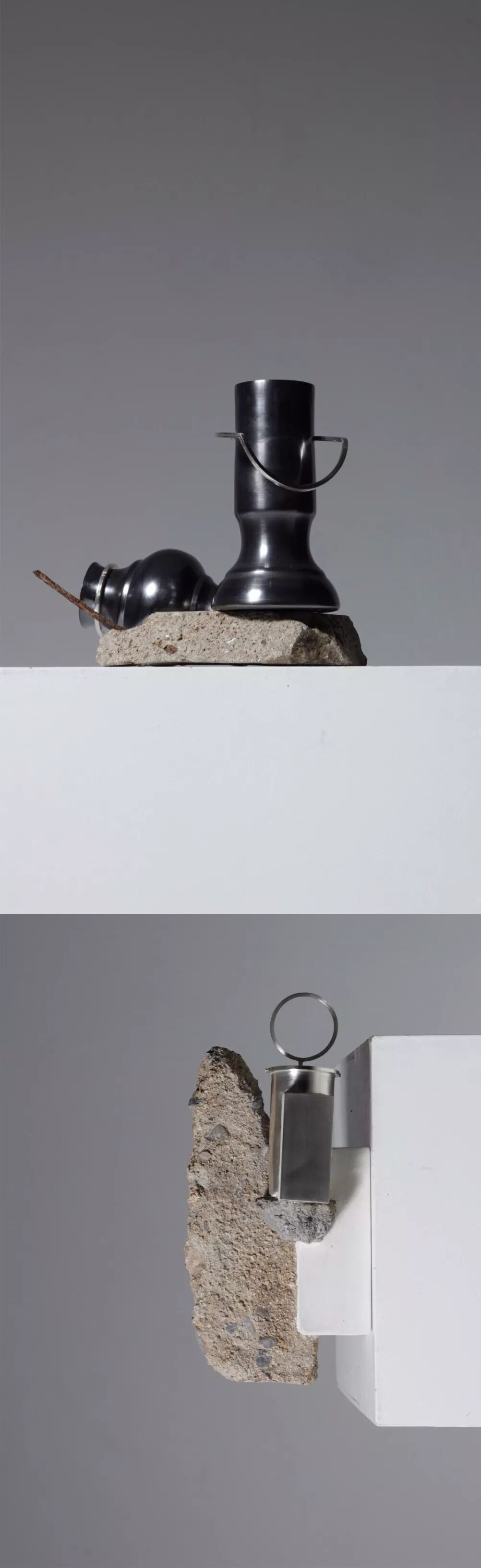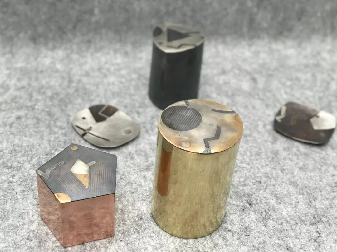 这组作品名叫《立器》。作者洪书瑶以银、铜为主要材料,经过锻造、打磨、抛光等多种工艺打造。