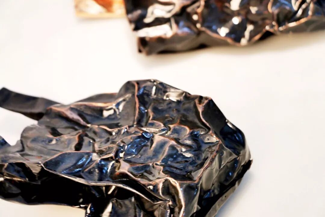 创作期间,李嘉欣在工艺方面分析了多种塑料袋的构造,在保留塑料袋的原型基础上,将材料替换成纯银、紫铜的金属材质,从而最终呈现出这组作品。