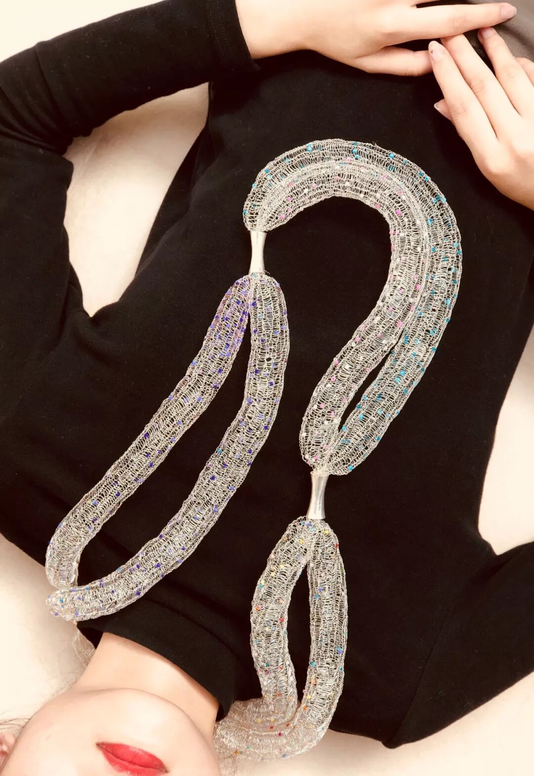 作者李昕蕊在创作这部作品时,采用传统编织手法,只是这次用的不是毛线,是银丝。