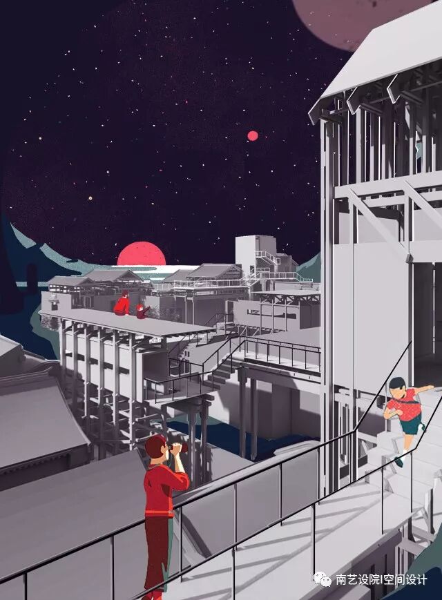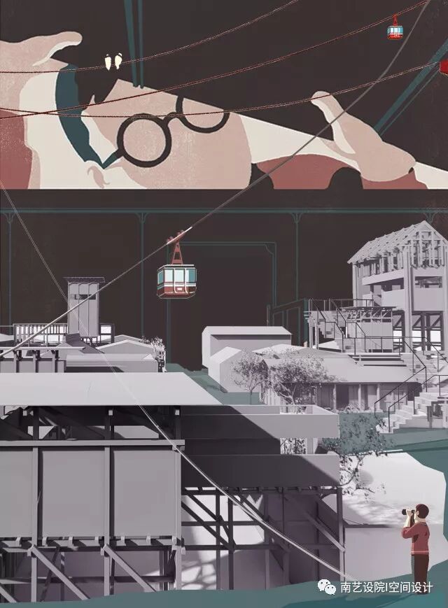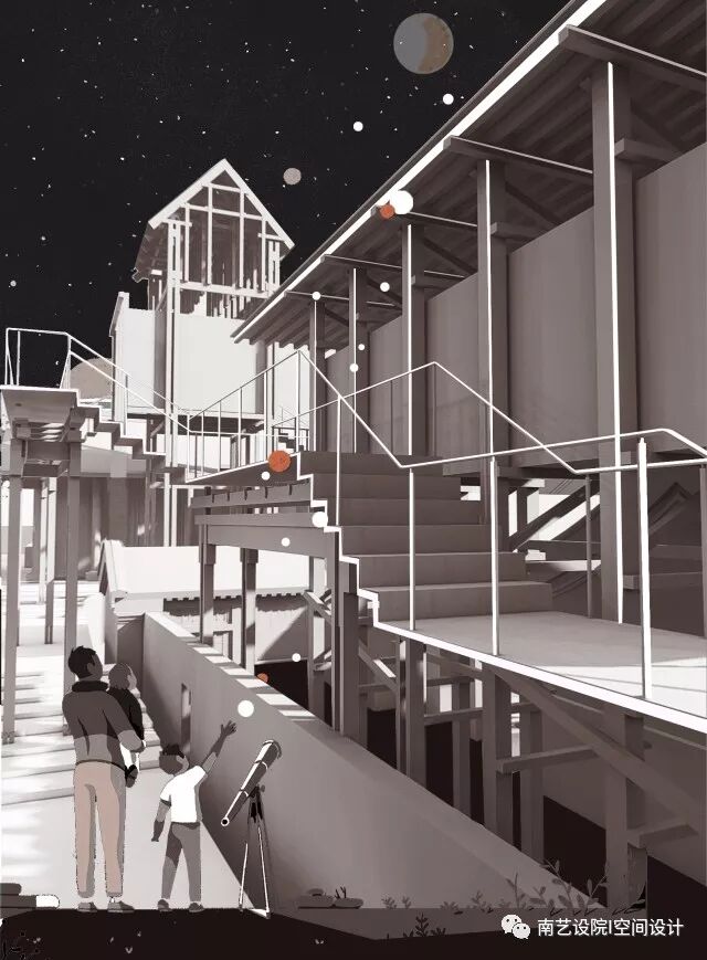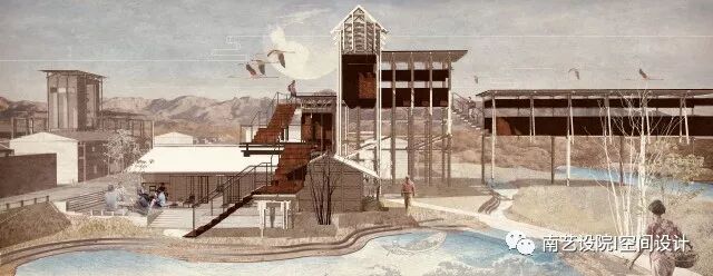 同时在这个系统中设置观景节点,让体验者以特殊的视角感受到文化节点之间的联系,感受场地文化脉络。