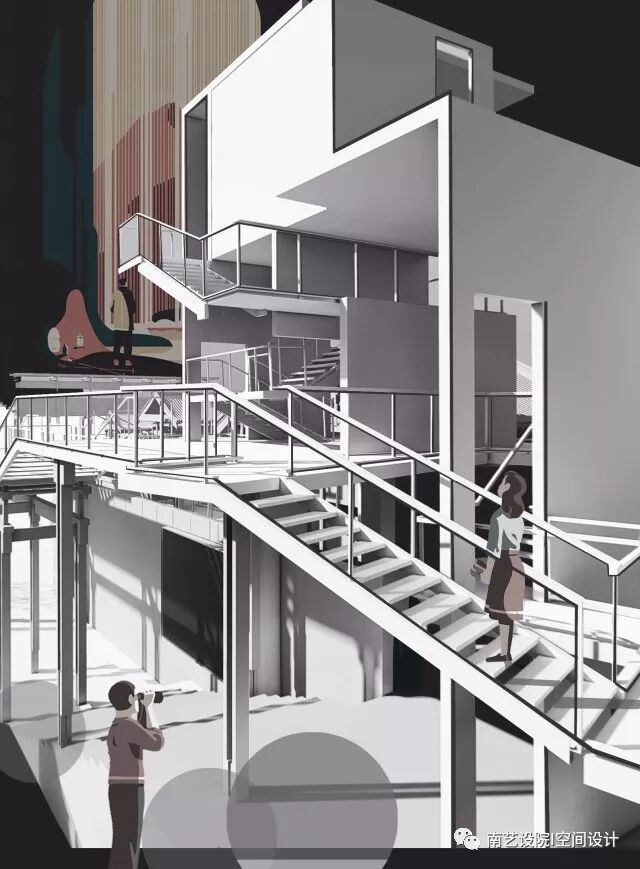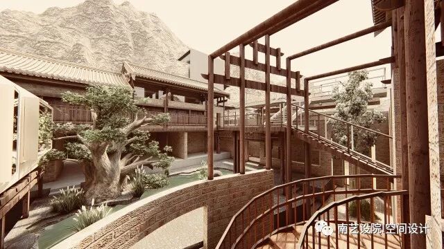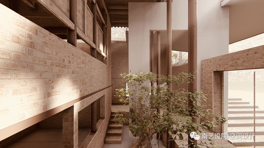 在重构路径,添加廊道系统的基础上,我们格外关注“院落”本身,一方面是廊道于院落叠合交错产生新的空间,另一方面是我们以空间的角度去重构院落,达到一个对于传统的更新。