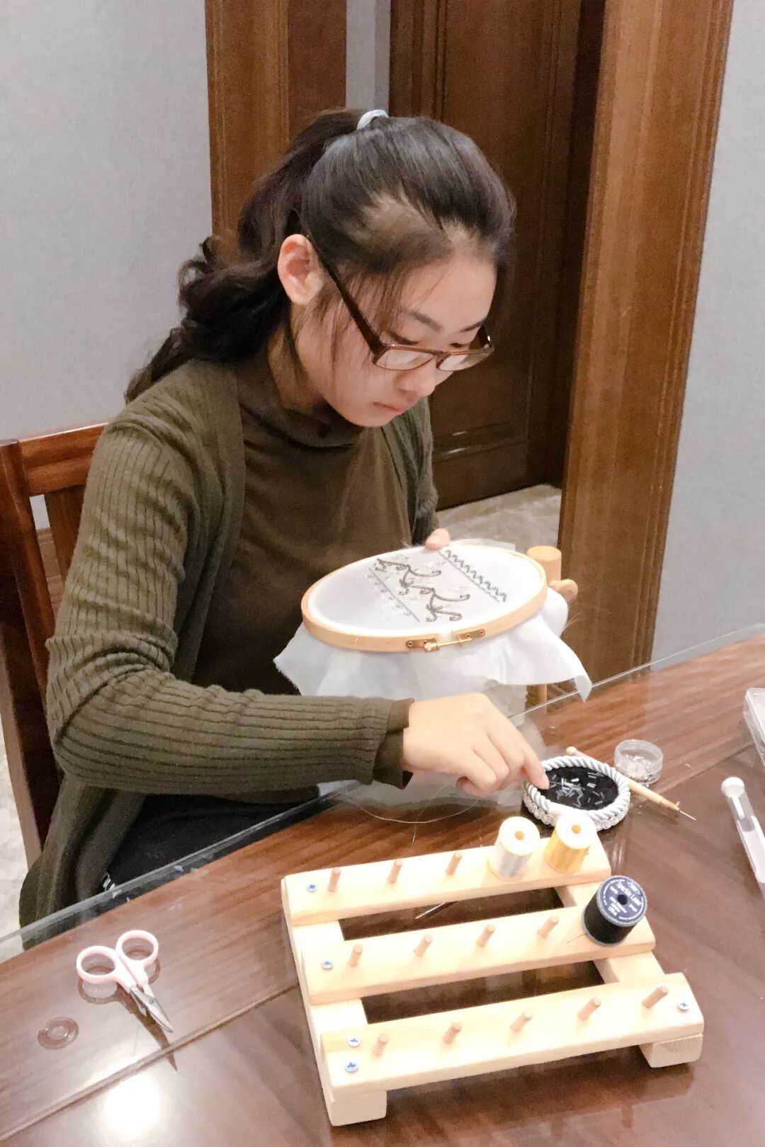 李鑫说大二开始接触到专业方向后,仿佛开大了新世界的大门,纤维艺术的每一类工艺都如此的有意思和有深度。扎染,刺绣,拼布,织布等等实在是有意思极了,因此在专业学习上更是投入了巨大的热情。