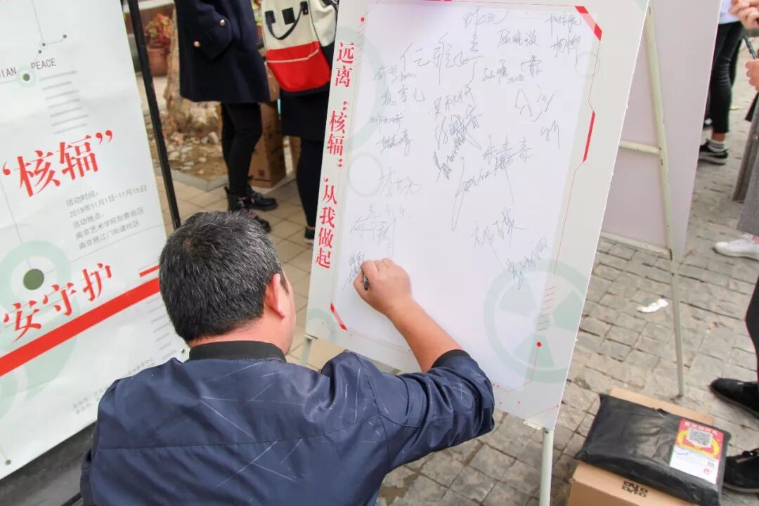 本次的“核与辐射”活动一共分为两个环节。第一个环节是11月9日举办的“核与辐射”环保主题的手绘布袋活动。第二个环节就是本次举办的“核与辐射”图片展活动。