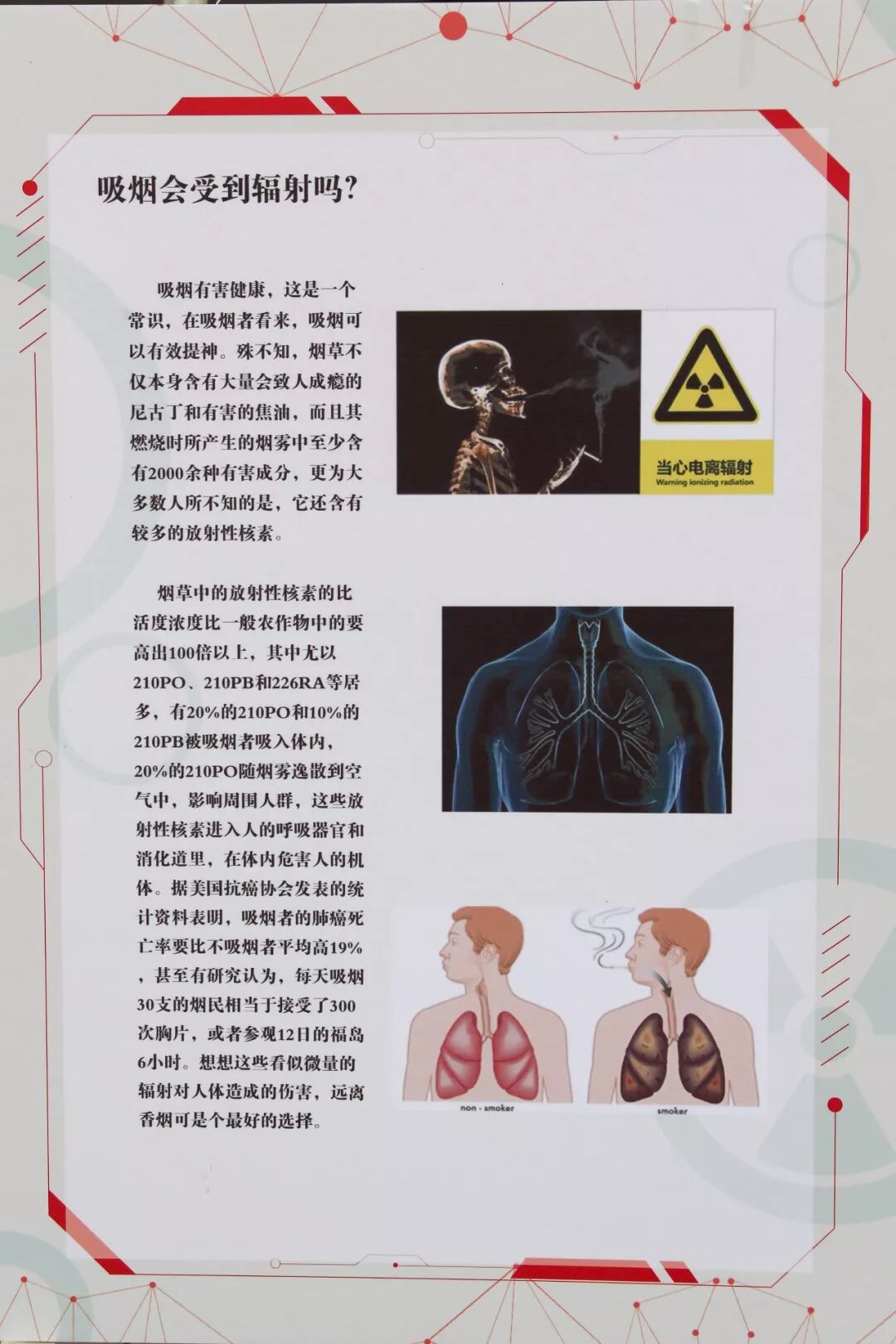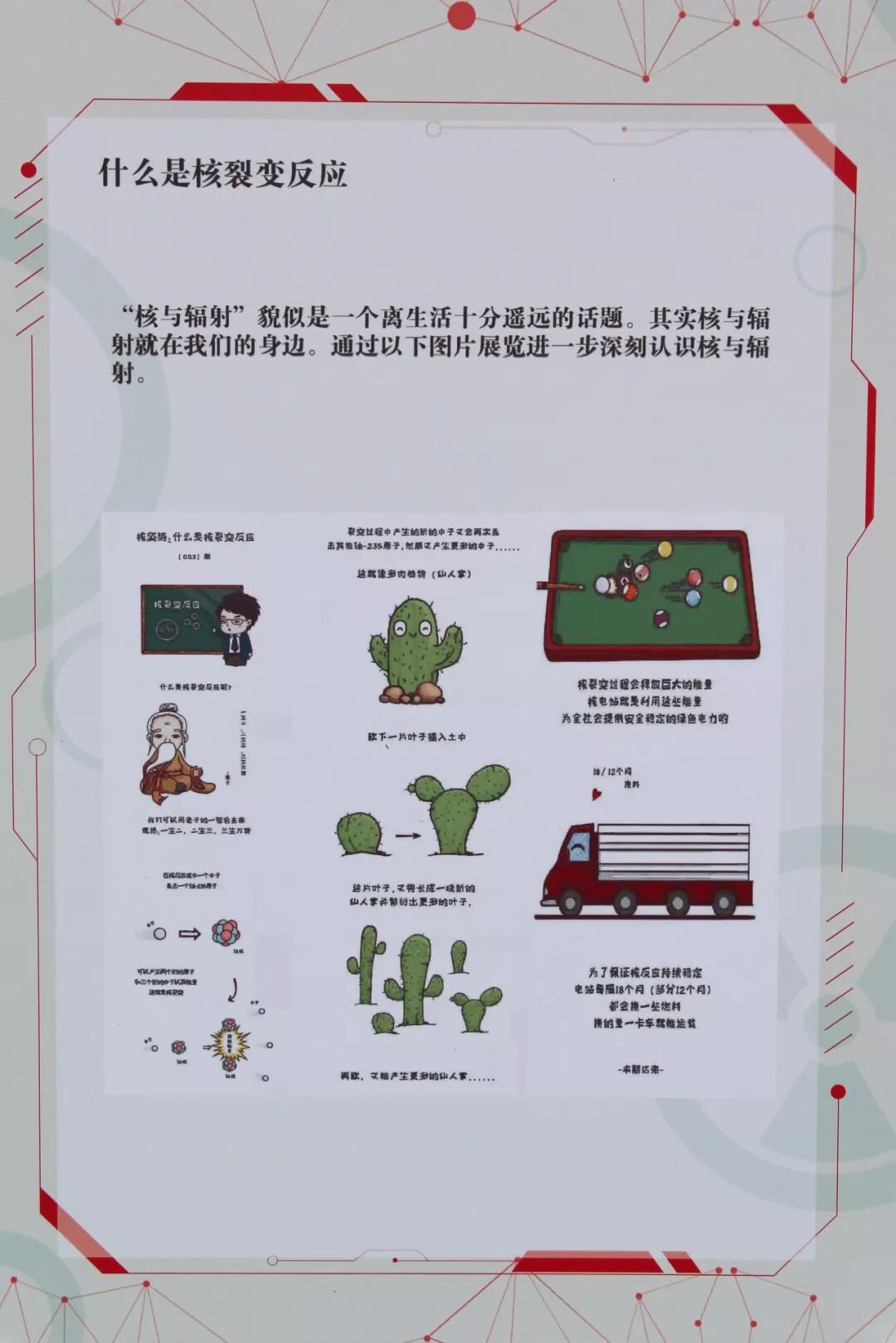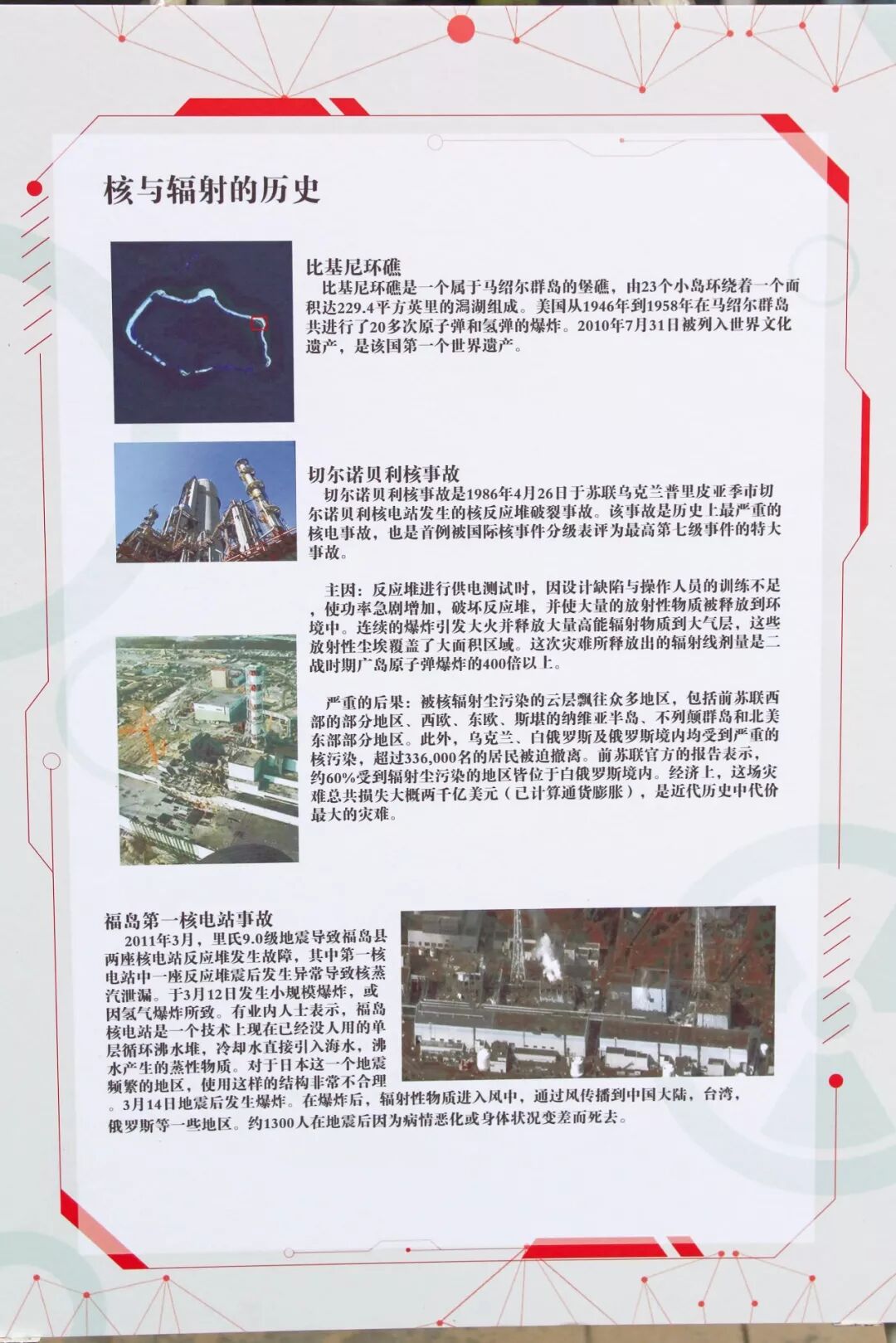 展览的内容大致分为四个部分:什么是核辐射?核辐射对于我们有哪些影响?核辐射对环境有什么影响?我们应该如何尽量减少核辐射带来的危害?
