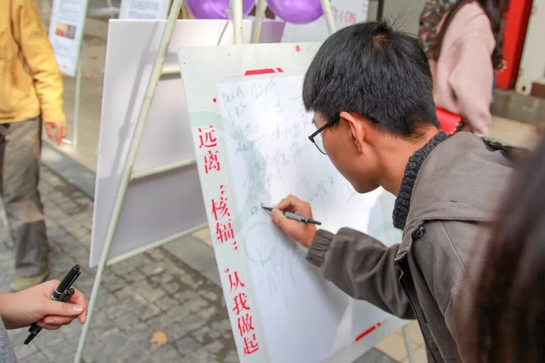 在本次活动中,同学们需要先了解图片展的内容,然后到相应人员处参与知识竞答,回答关于本次活动的问题才能拿到奖品哦。