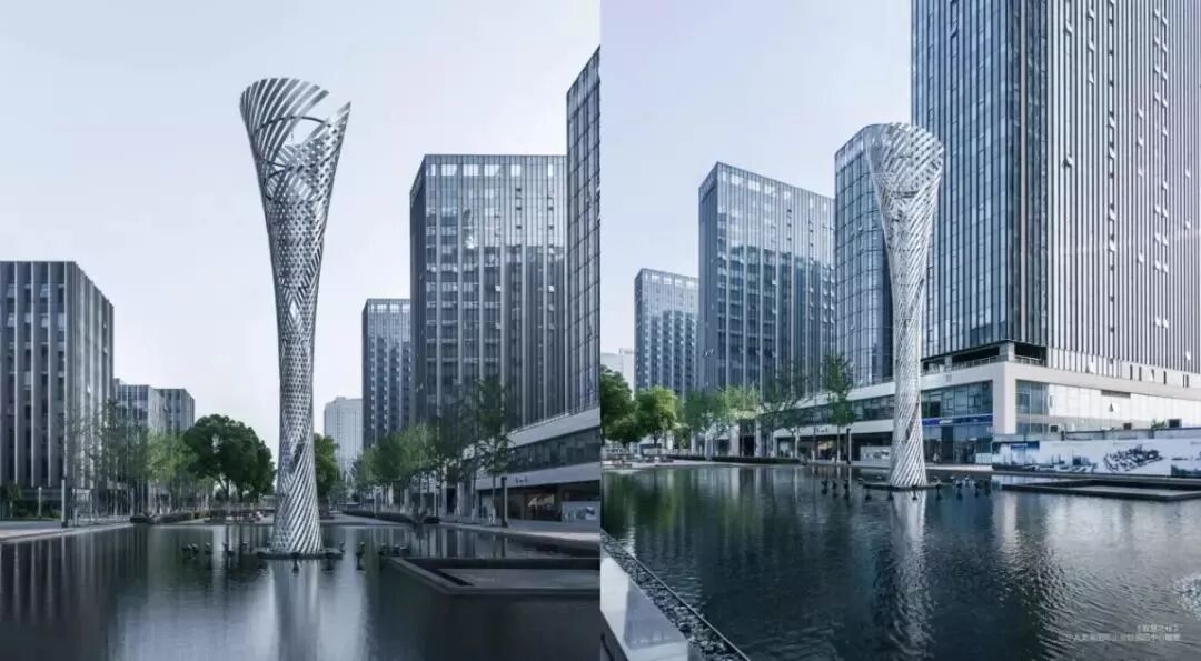 ▲江宁九龙湖国际企业总部园中心雕塑,合作:拙景景观