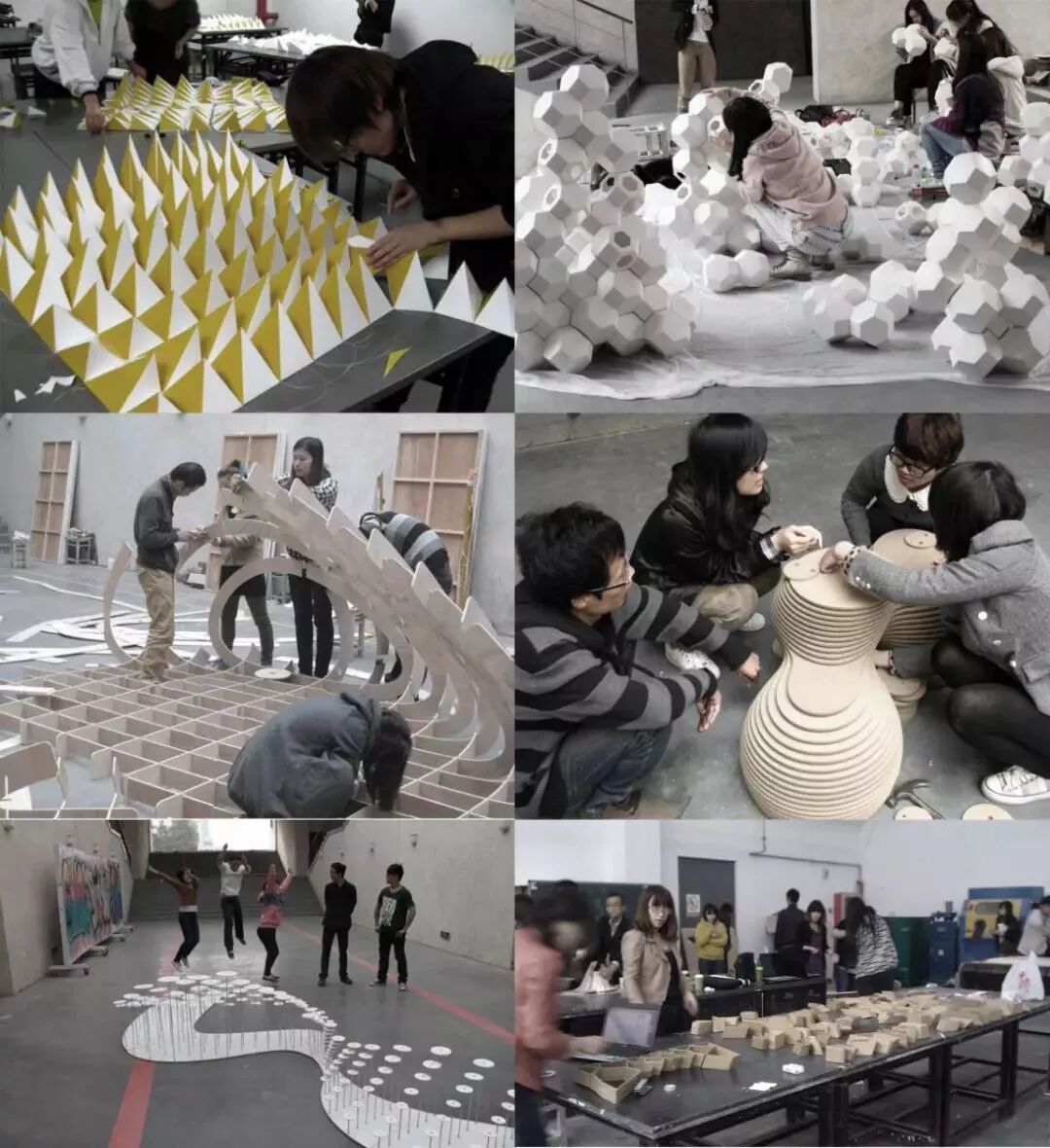 “实验性设计教学向学生提倡的是:掌握创造性的思维方式、工作方式与表达方式,培养抽象的、多元的、反思的、实验的设计方式与工作习性。”但如何实验如何教?这对于主导教学的教师是一种全新挑战,因而在教学目标、教学内容、教学方法、教学过程、教学成果评价的设置上采用“设计作为研究”为标准,以建构“研究型课程”空间教学体系为指向。环境专业实验性空间课程首次教学引入了当时在国内兴起不久的“参数化设计与建造”方向,是国内首个在本科教学体系中正式以课程的方式进行教学实验的高等艺术院校,而以往国内艺术院校中为数不多的此类教学都以短期国际合作“工作营(workshop)”的模式展开。