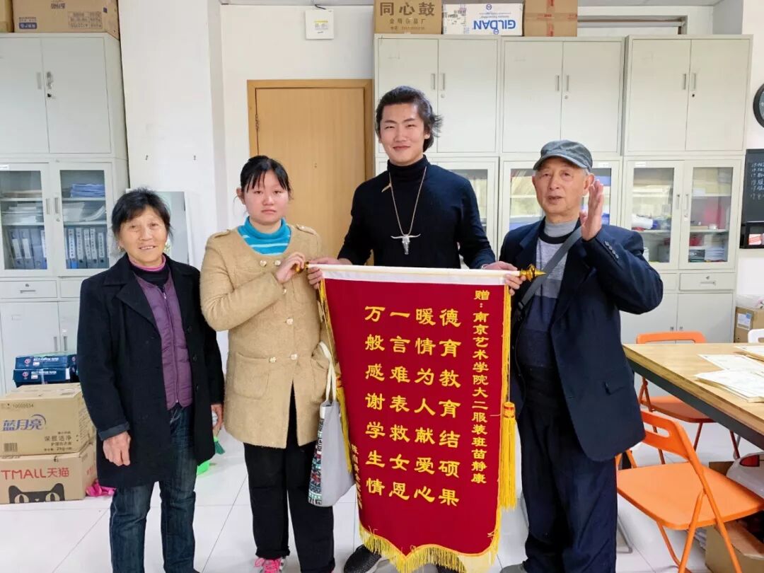 2019年3月13日晚10时许,苗静康同学在骑自行车回学校途中,路过江苏省委公交站,发现旁边绿化带里坐着一名女生。因其神态不自然,且脖子上挂着的公交卡上有其家人联系电话,便引起了注意。苗静康同学上前关切询问,同时拨打联系电话给其家人,从家人口中得知该女生有一定程度的精神障碍,已经从家中走失3天,其家人前两天已经报警但寻找无果,此时接到电话非常惊喜,立即从家中赶来。苗静康在原地等待直到该女生家人将其安全接走,该女生家人对他的良好品行赞叹不已,并到设计学院学工办公室赠送锦旗一面以表感激之情。
