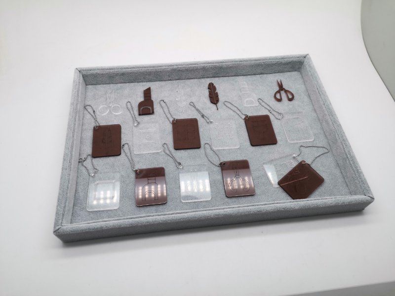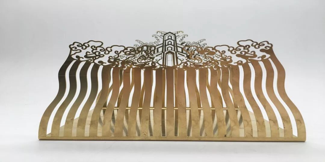 以南京金箔制作中使用的工具为元素,用极其简约的风格制作的亚克力透明挂饰。采用了亚克力切割与雕刻工艺,是现代材料与古老技艺理念相结合的产物。