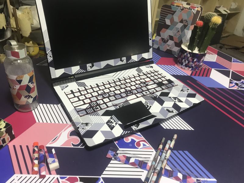 云锦纹样结合几何图案的再设计,以平面绘制的纹样去附着在生活用品之上,根据不同颜色的图案去营造氛围,以一种包裹艺术的手法去表达自己所设计的图案和理念。