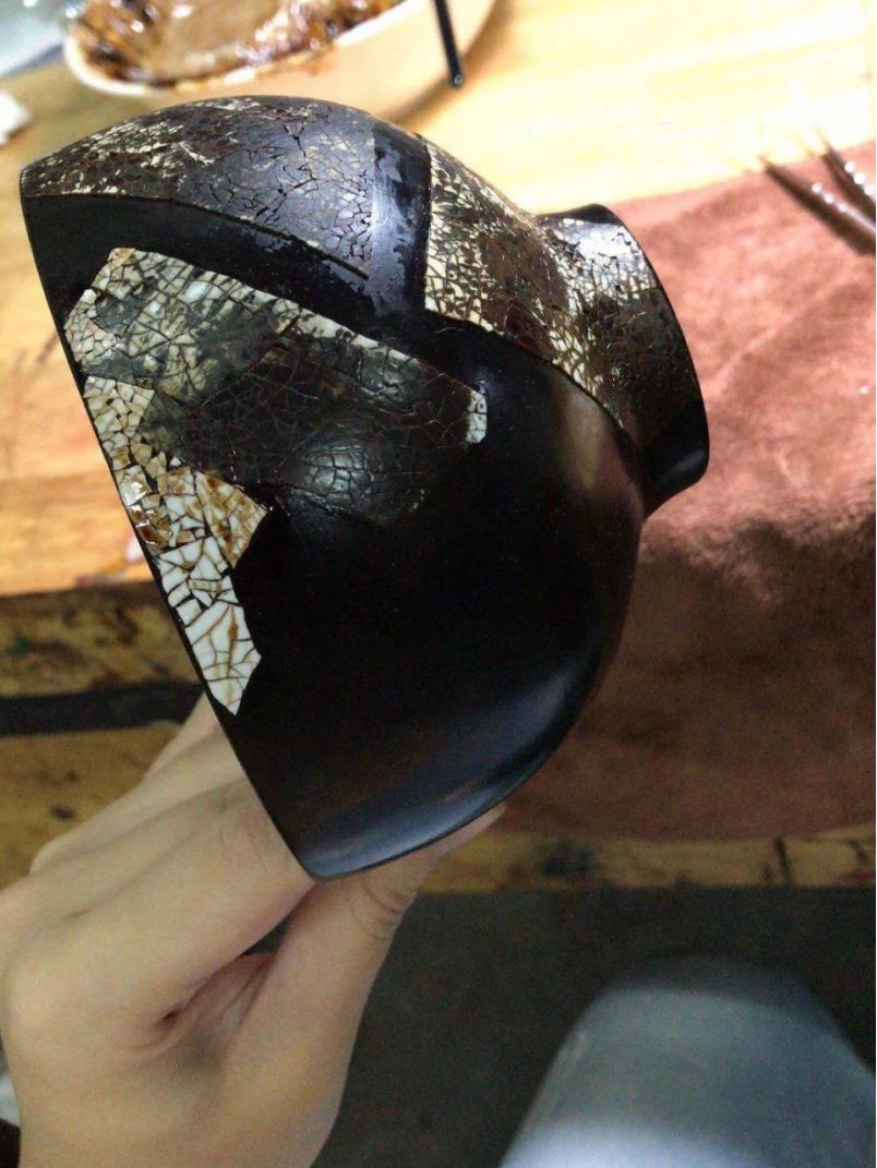 在现代手工艺门类中,漆艺是一种比较有东方传统韵味的手工艺,工艺形式比较丰富。在色彩和工艺品装饰上比较有特色。所使用的材料贵重,例如螺钿,金箔和蛋壳,价值比较高,正所谓“百里千刀一两漆”。漆艺所追求的是极致中的细致,贴蛋壳是初学者学习漆艺中必备的一项技能,要贴无数次才能练出来熟练的技巧,需要制作者用心,专心,每一片蛋壳像一粒“灰尘”,作品在作者手中经历无数次的细致打磨才会逐渐成型。所以每一件昂贵作品的背后都是无数次的千锤百炼。