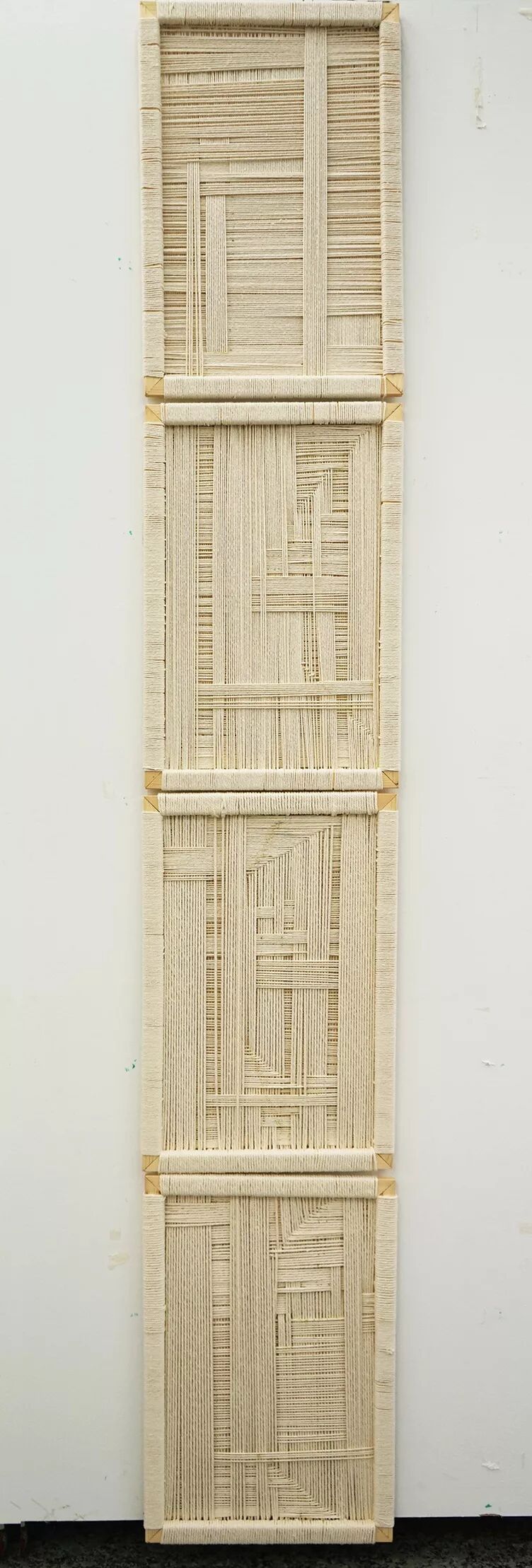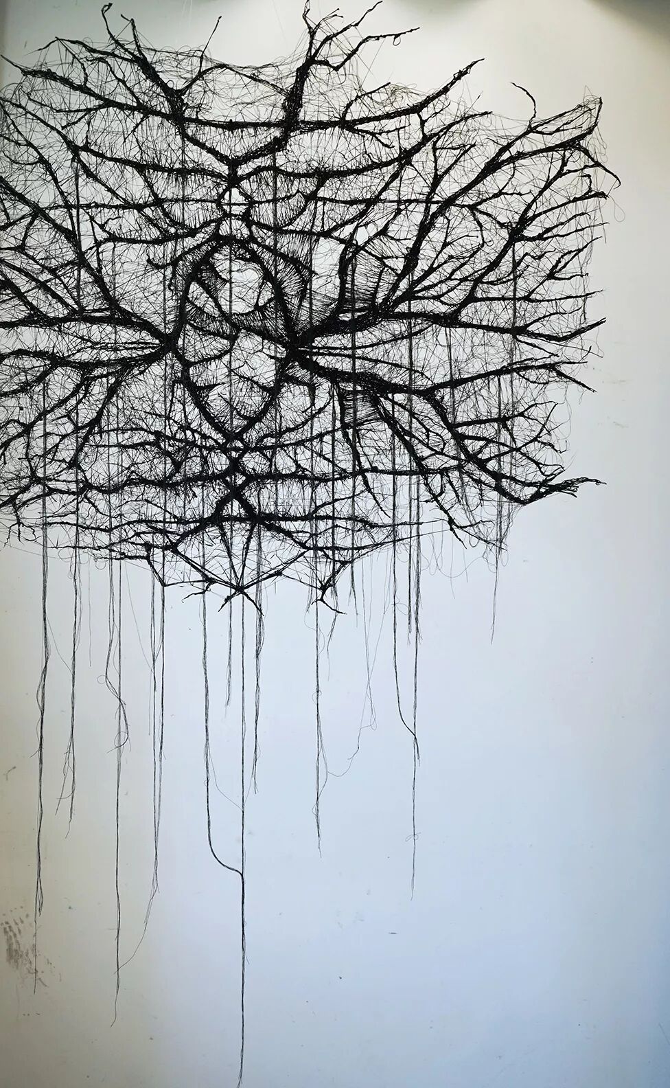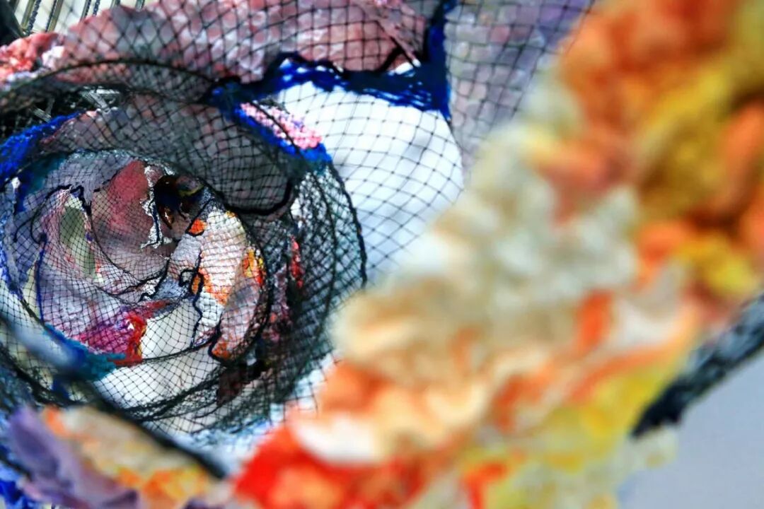 作品具有极强的物理倾向性的张力,不同的纤维材料和结构互相穿插,最终形成曼妙的肌理美。作品中稀疏的部分与密集的部分相互呼应,这也影响了张力的强弱。同时,张力的节奏也影响着观者的情绪。有条理的,有节奏的肌理变化给人整齐舒展的感觉;而粗犷和激烈的肌理变化给人紧张刺激的感觉。通过张力的强弱,观者甚至能够在一呼一吸中感受作品丰富的节奏变化。
