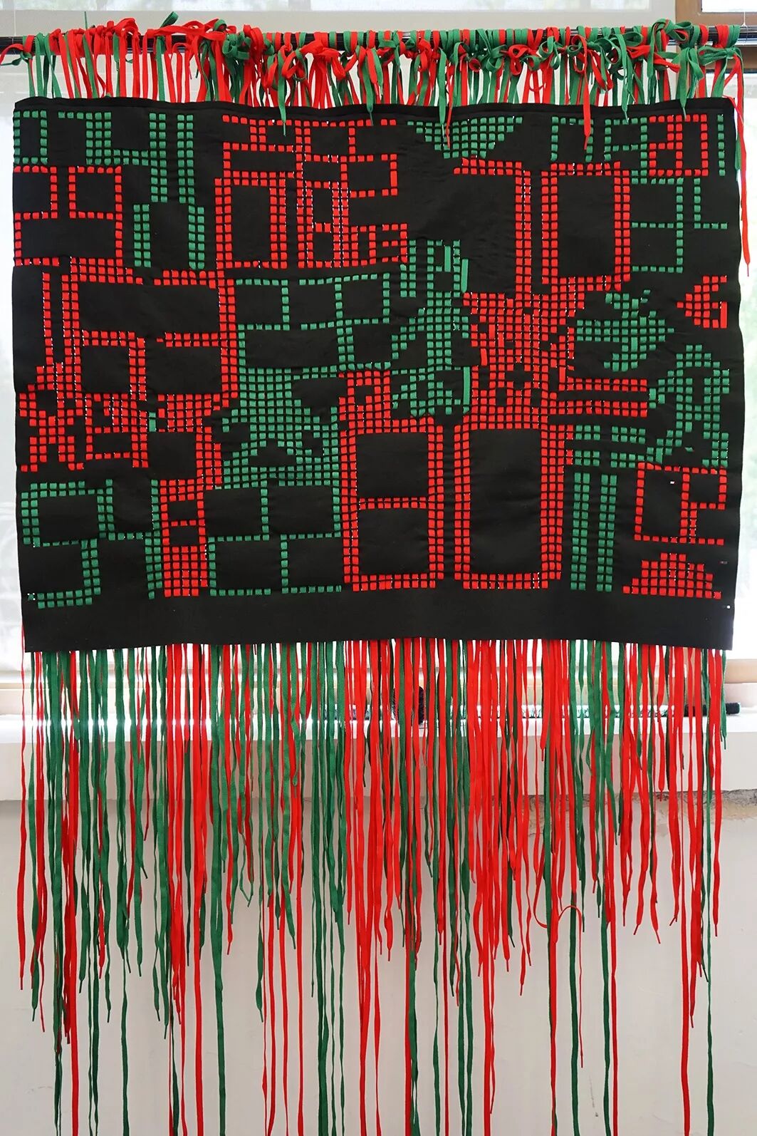 城市是什么样的呢?作者以解决这个问题为目的,通过一次次漫步街头,体味心中对于大城市的印象来找寻创作灵感。城市中有宽敞明亮的街道,也有杂乱无章的小巷。看似毫不相关的二者被人为地交织在一起,汇成了城市的生命脉路。作品运用纤维材料,结合纺织手法,展现了城市之“路”的一区美景。