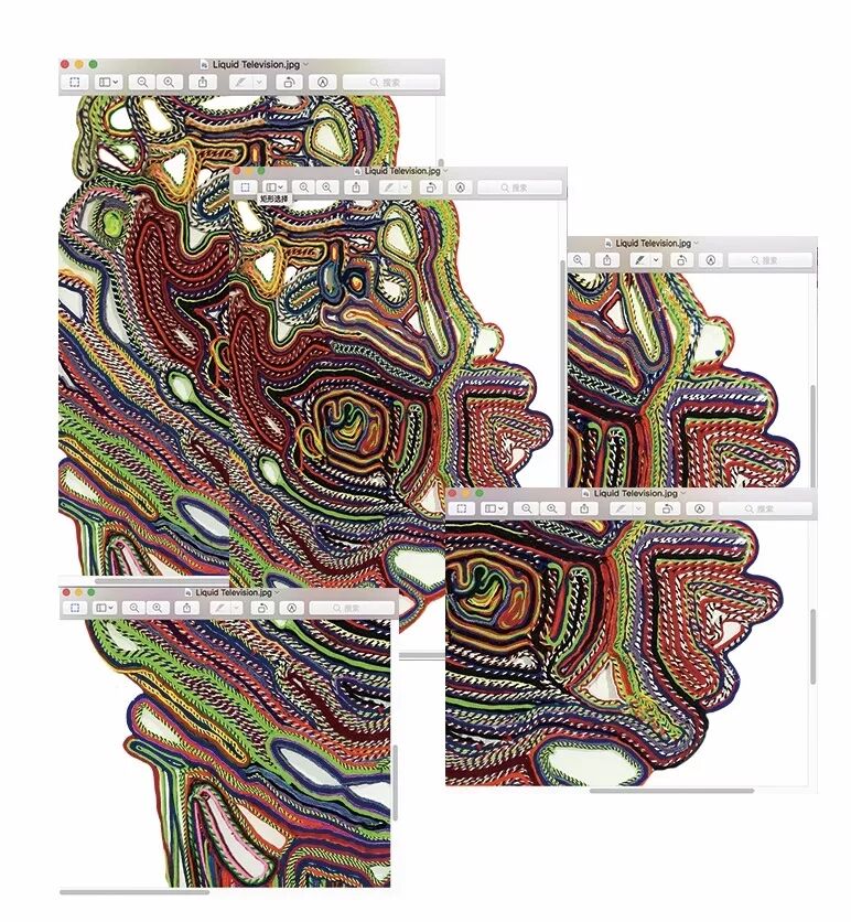 时间是什么?从哪里开始?万物都有一个源头,时间亦如此。作品针对时间,重构了一种艺术形式。纤维艺术具有无限开放性,因此,作品通过圆形的表达方式,来表现“时间”的源头。作品将课程第一阶段,观看之道中所收集的素材整合到了一起。沿途上,不同时间收集到的图像被堆叠在同一个画面上,打破了时空的界限。通过这个作品。作者像观者传达着超越时间限制的超现实感。